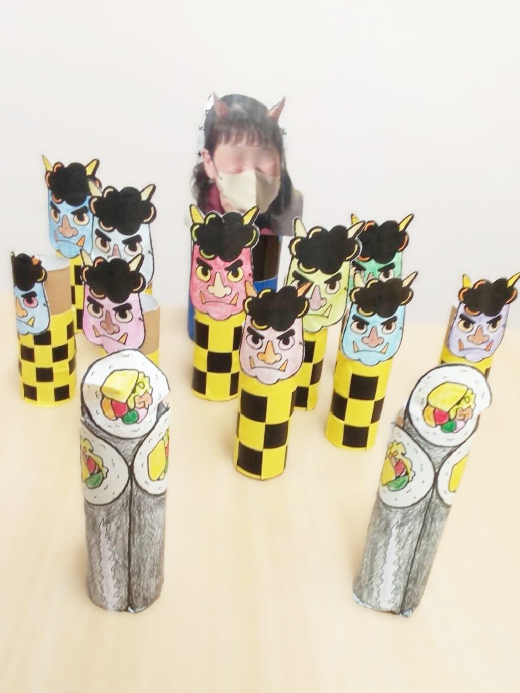 せっかくの節分なのでボーリングの玉の代わりに恵方巻を添えて。