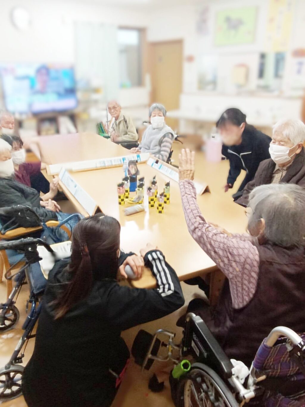 みんなで一緒に豆まきをしましょう!と思いましたが、今回は志向を変えてレクリエーションで楽しもうと思います。