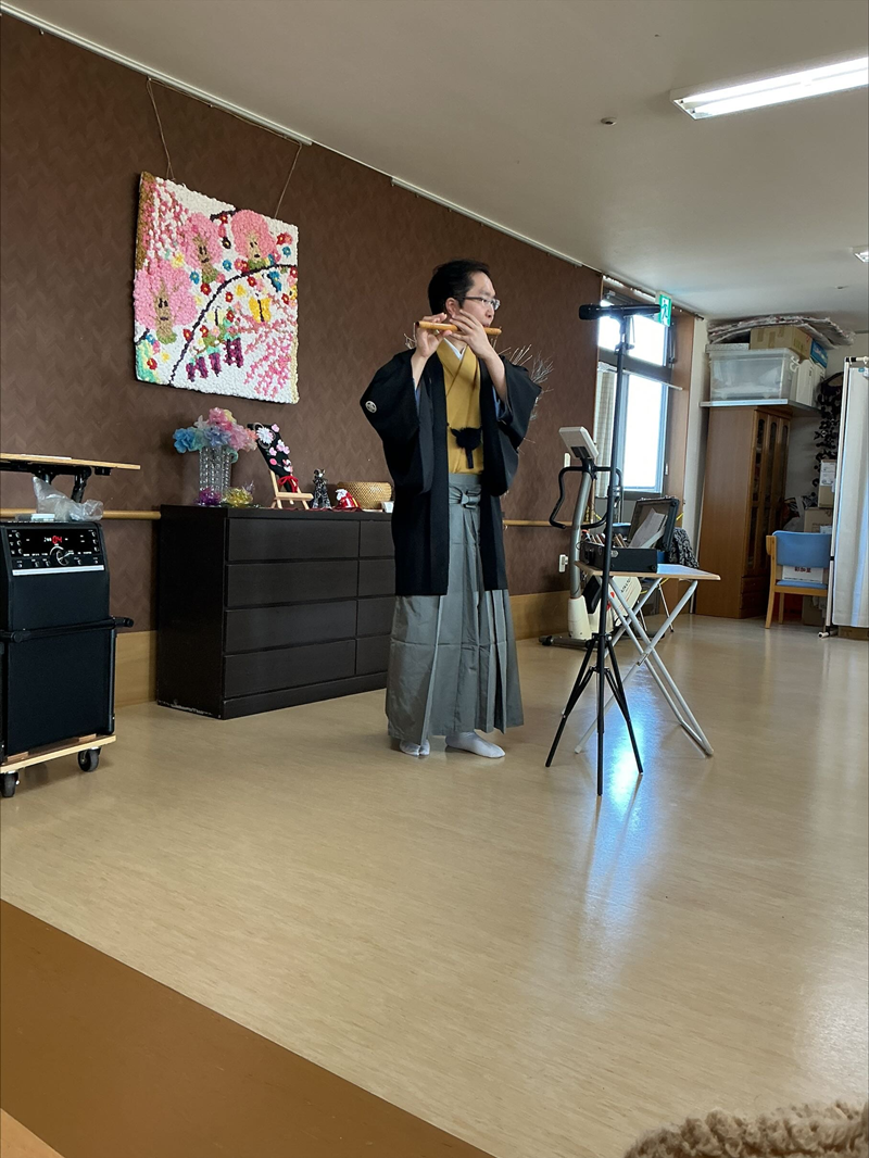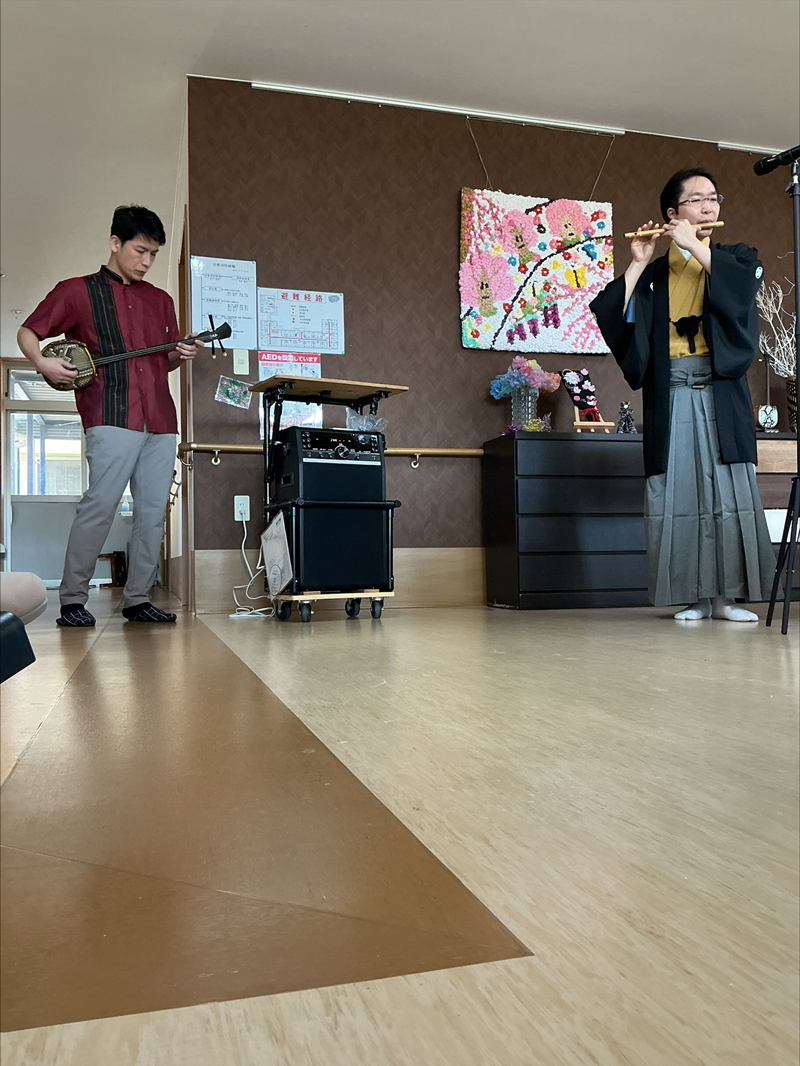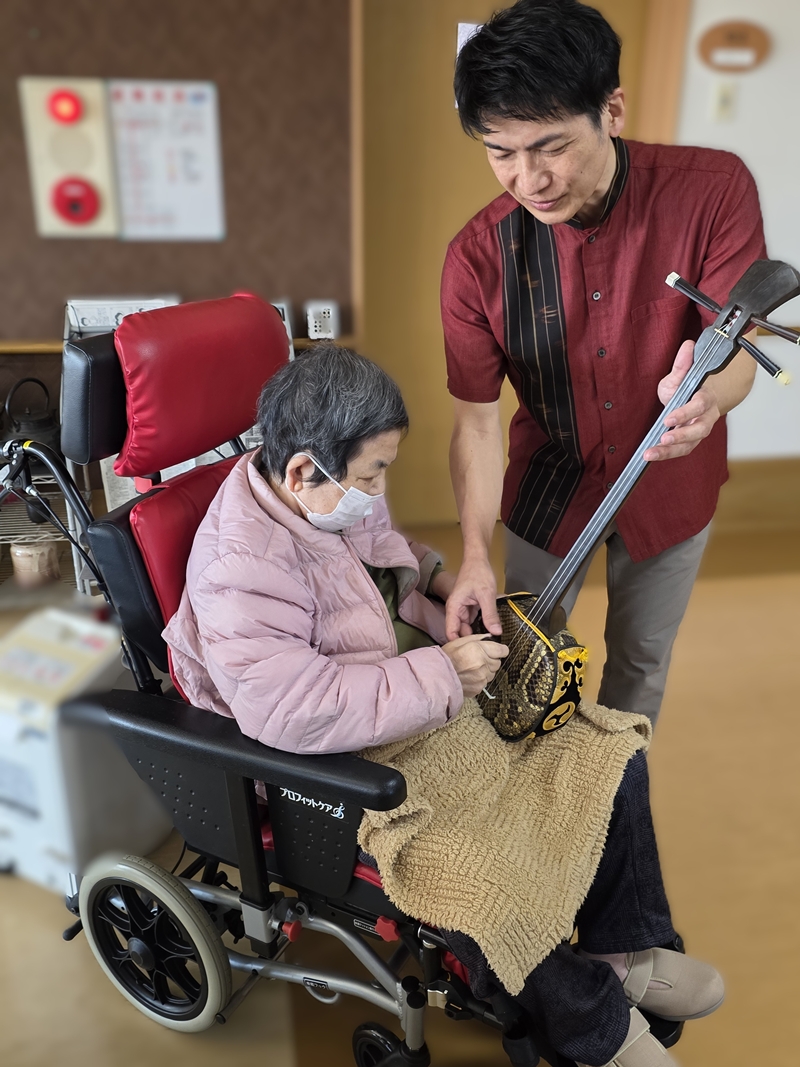 『天城越え』や『瀬戸の花嫁』などの有名曲や、九州の馴染みのある『炭坑節』『おはら節』では入居者も手拍子しながら聞き惚れていた様子。